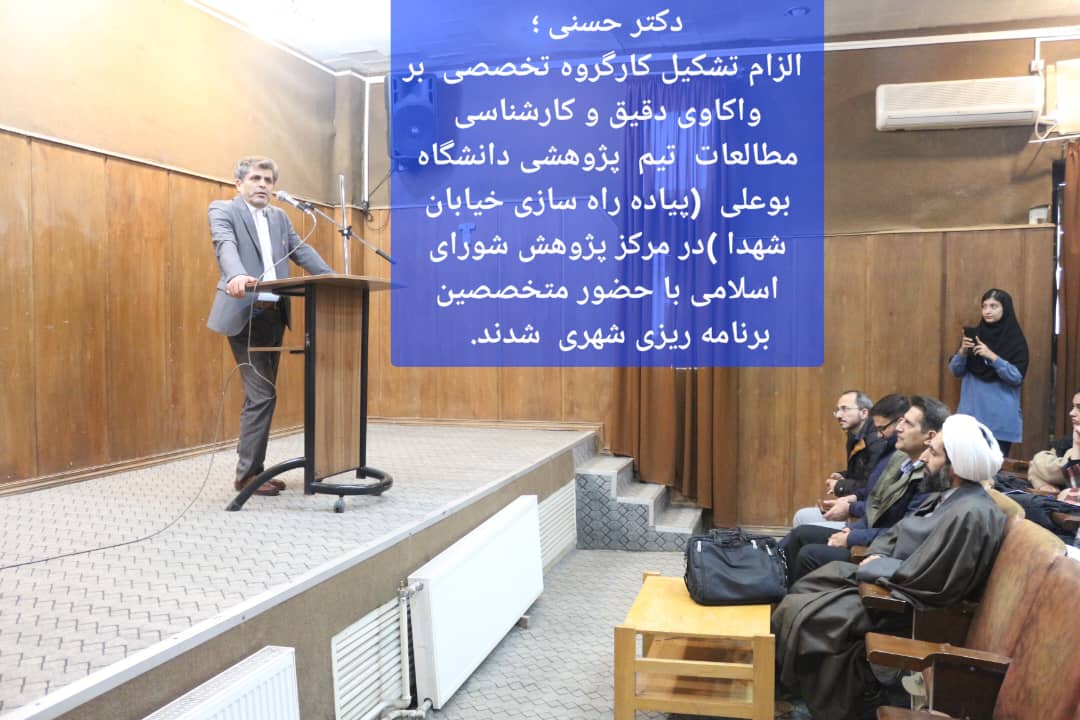 به همت مرکز پژوهش های شورای اسلامی شهر همدان و با همکاری دانشگاه بوعلی، ارزیابی ( اتاف ) تاثیرات پیاده راه سازی خیابان شهدا شهر همدان، جناب آقای دکتر صادق حسنی متخصص برنامه ریزی شهری نظرات فنی و کارشناسی پیرامون موضوع در سالن آمفی تئاتر هنر و معماری به ایراد سخن پرداختند.